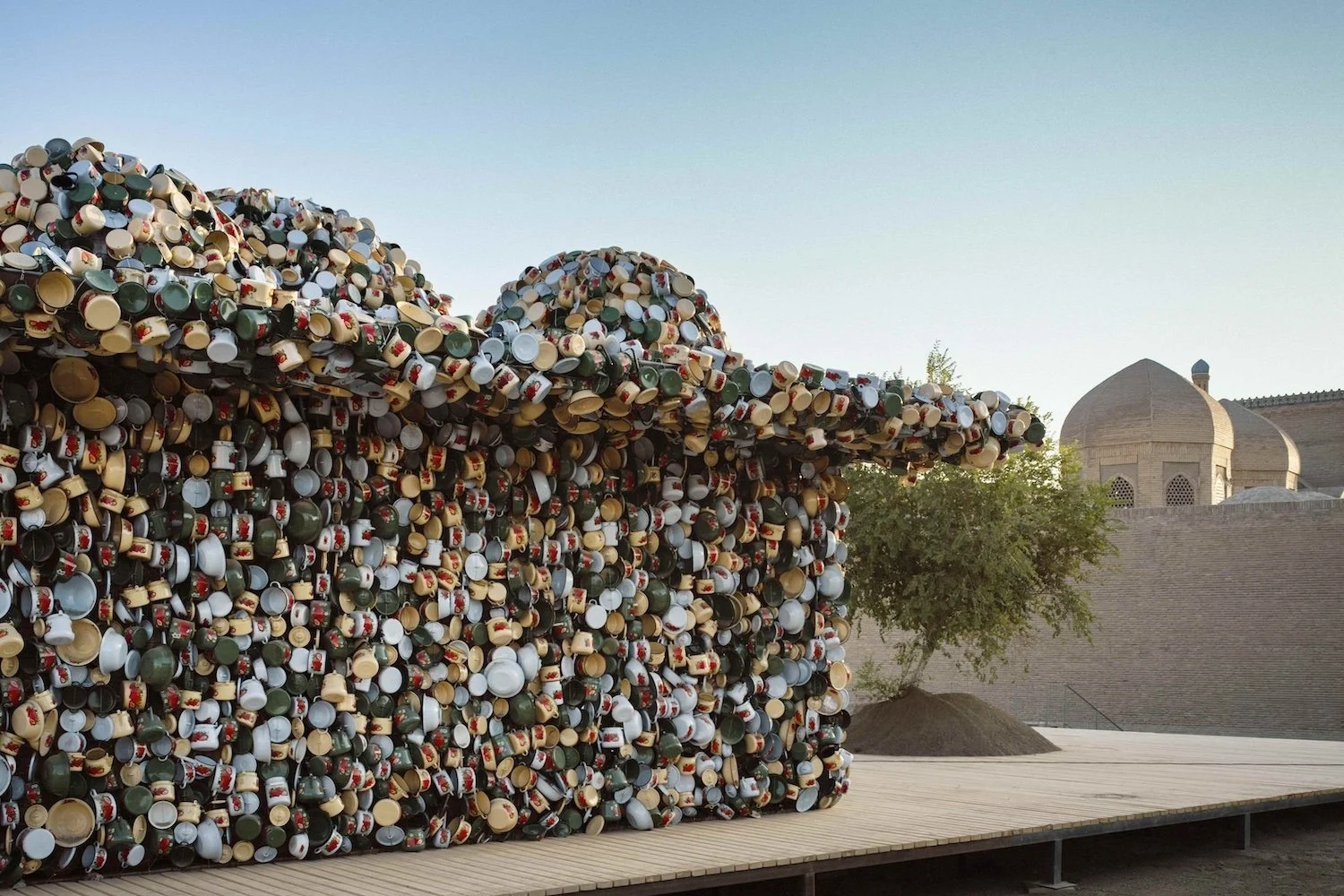 Subodh Gupta mit Baxtiyor Nazirov, Salt Carried by the Wind, 2024–2025, Ausstellungsansicht Recipes for Broken Hearts, Magoki Attori Square vor der Karawanserei, Buchara 2025